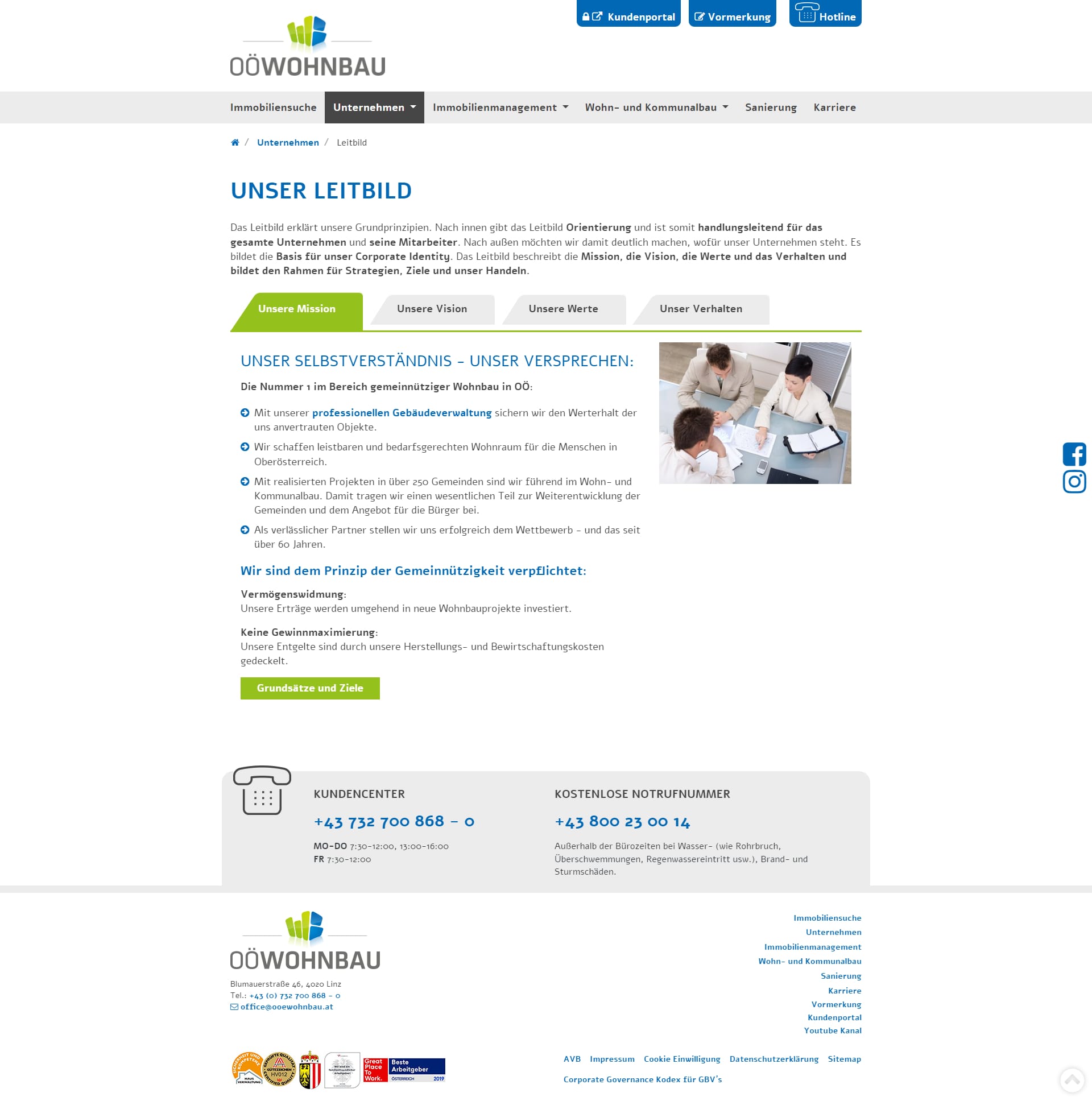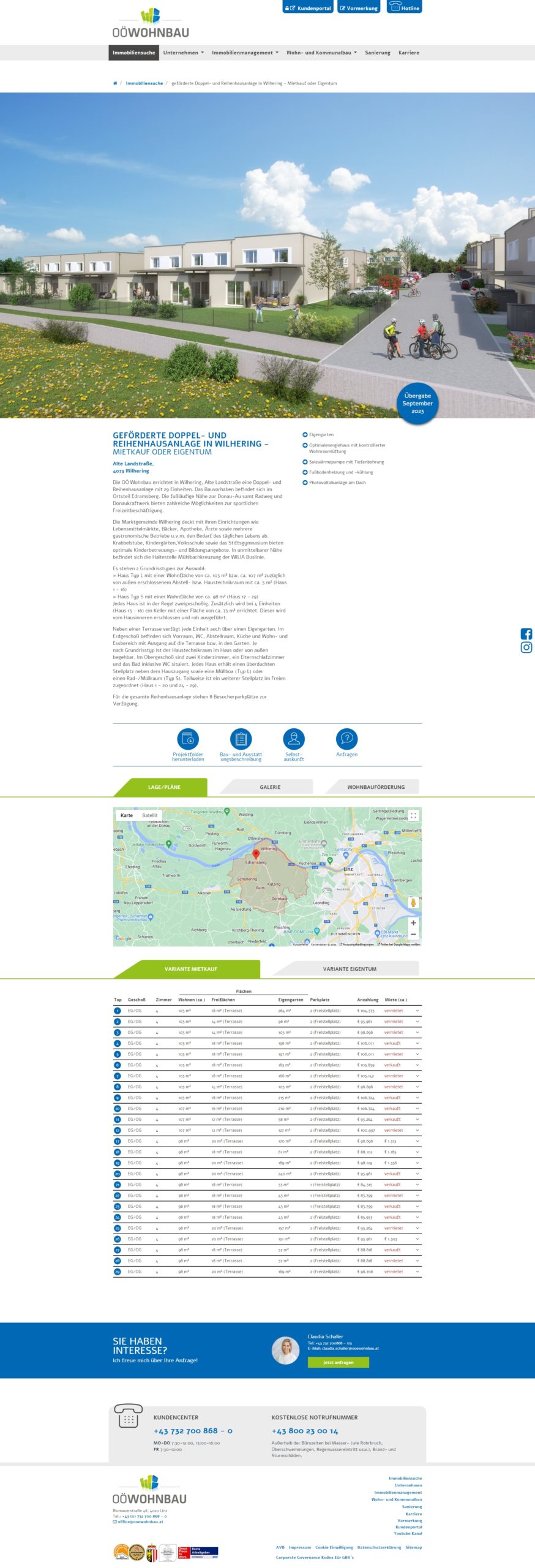 Die OÖ Wohnbau ist seit über 60 Jahren am gemeinnützigen Wohnungsmarkt tätig und bietet die gesamte Projektabwicklung an: von Planung, Errichtung und Sanierung bis hin zu Revitalisierung von Wohn- und kommunalen Bauten. Bei der Errichtung von Wohnbauten legt die OÖ Wohnbau großen Wert auf eine solide und qualitativ hochwertige Bauausführung. Es werden Wohnungen als auch Doppelhäuser in der Rechtsform Eigentum, Mietkauf und Miete angeboten. Der Schwerpunkt liegt in der Schaffung von Eigentum. Als gemeinnütziges Wohnbauunternehmen mit jahrzehntelanger Erfahrung in der Verwaltung von Wohnungseigentumsobjekten, Betreuungsbauten und des eigenen Mietbestands werden rd. 24.700 Kunden betreut.